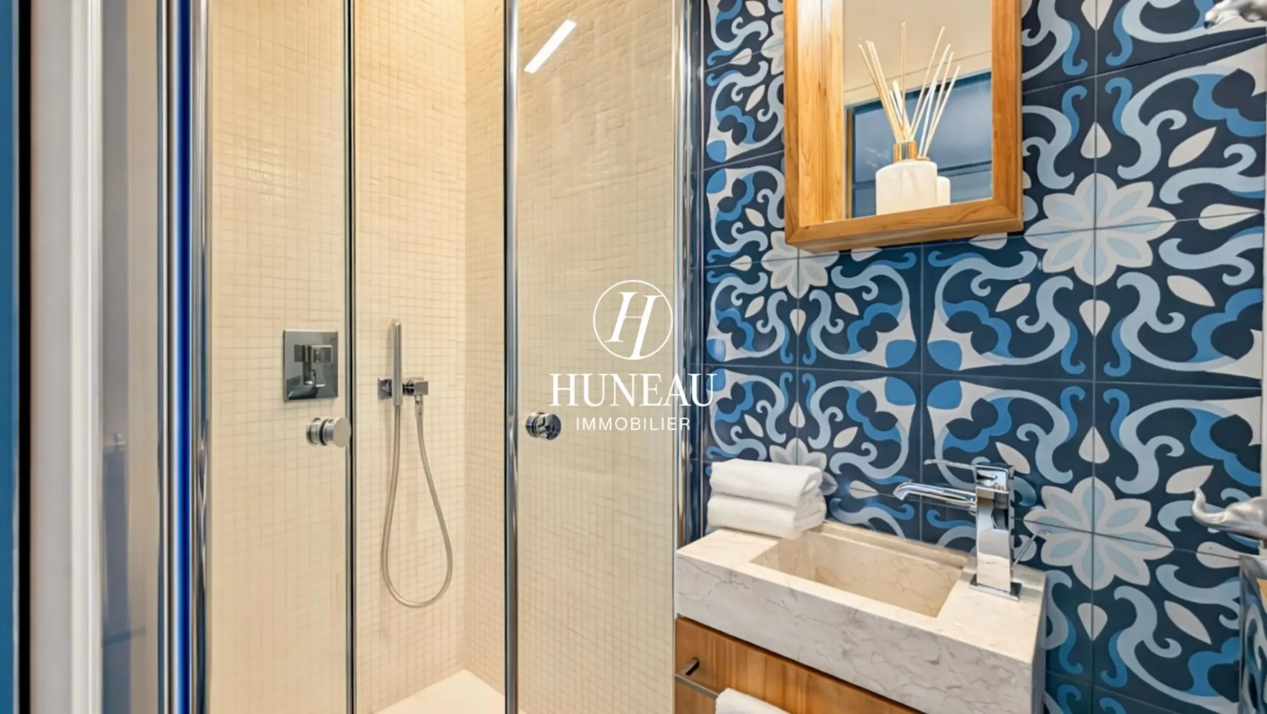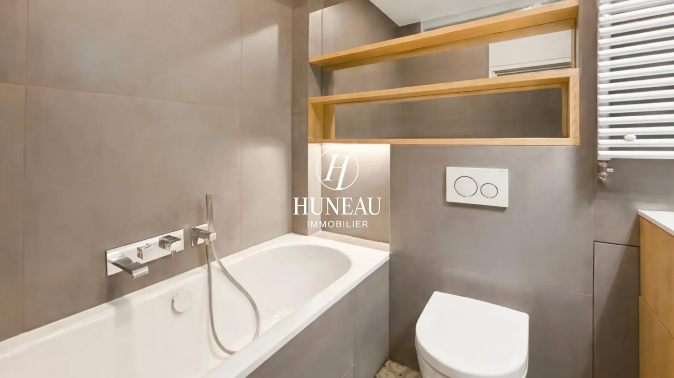Cet appartement comprend : une entrée, un séjour et sa salle salle à manger, une cuisine séparée sur mesure et entièrement équipée, trois chambres avec placards sur mesure dont une avec une salle d’eau, une salle de bains avec baignoire, douche et toilette, ainsi que des toilettes séparés et de nombreux espaces de rangements dont un espace buanderie.
