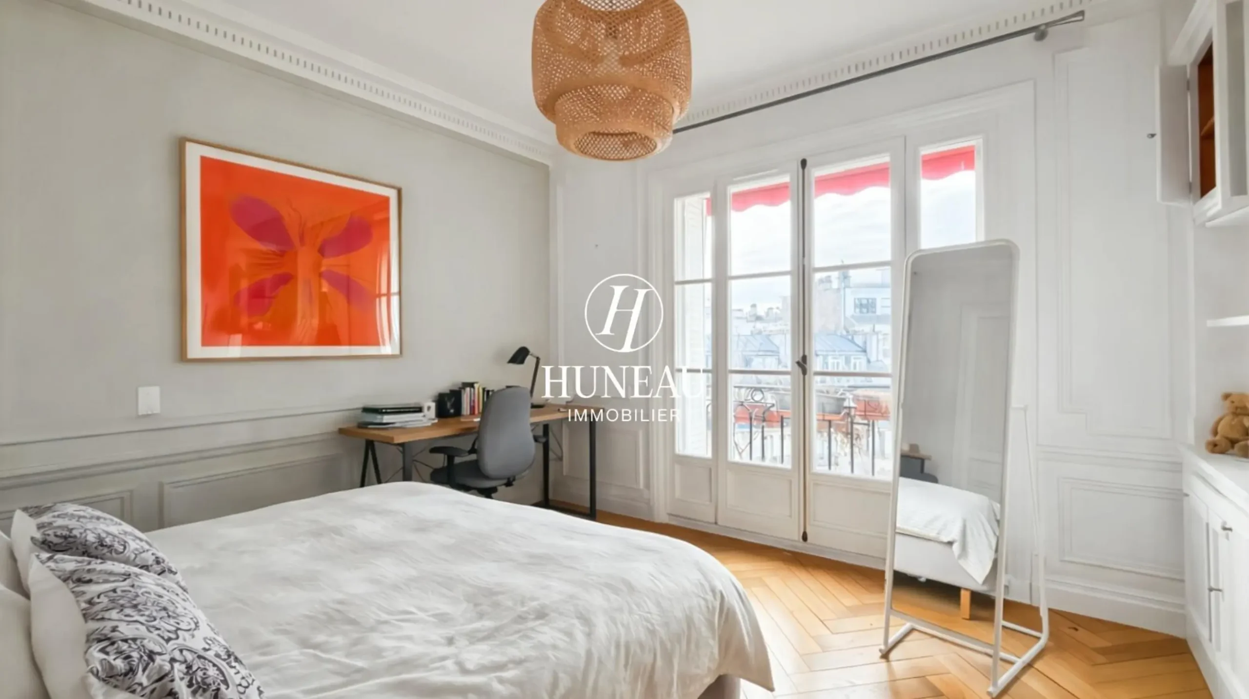 L’appartement est traversant, très lumineux de par son exposition plein SUD et au calme complet de par son étage élevé. Il dispose de vues dégagées sur Paris et sans aucun vis-à-vis. Confortable et idéal pour une famille avec une distribution entièrement optimisé et sans aucune perte de place, de très beaux volumes, une très belle hauteur sous plafond (3 mètres), des fenêtres en doubles vitrages, de nombreux espaces de rangements ainsi que le chauffage inclus directement dans les charges. Charme de l’ancien avec du parquet en pointe de hongrie aux sol, une cheminée d’époque fonctionnelle et très bien conservée ainsi que des moulures appartentes aux plafonds.
